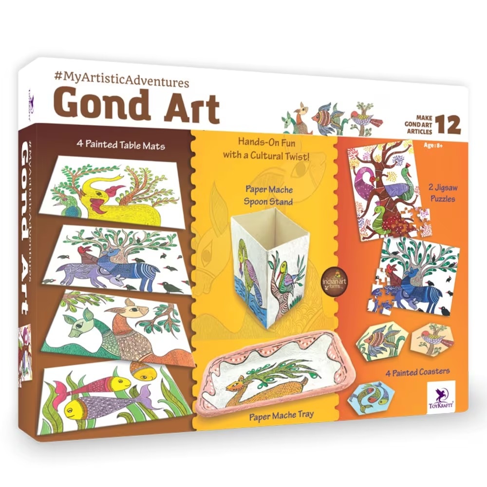 Ignite your child's creativity with our Gond Art Craft Kit, perfect for kids aged 9-12! This engaging DIY kit introduces traditional Indian art forms, allowing children to create a beautiful papier-mâché spoon stand and tray, customizable table mats, and coasters while exploring vibrant Gond painting techniques. It also includes two authentic Gond art puzzles for hours of fun and skill-building. Ideal as a gift for girls and boys, this kit encourages imaginative play, cultural learning, and family bonding — where creativity meets education! Give your child the gift of artistic adventure today! Find all your art supply needs in one place! THE ART CITY IN GOREGAON WEST SHOP NO .7 SNEHDEEP CHS . VIDHAYANIKETAN MARG ROAD NO 17, M.G.ROAD GOREGAON WEST - 400 104. website - theartcity.net People also buy from.. CONTECT - 9029548319 - 8169633825