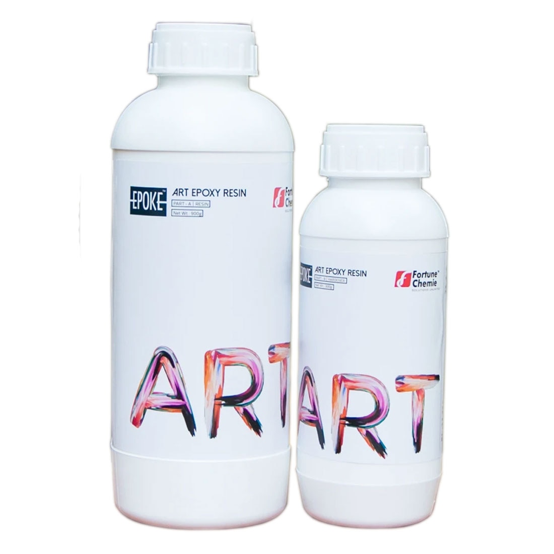 Epoke art epoxy resin is a high gloss clear coat system specifically designed for all your creative projects. Made for artists by epoxy specialists, this formula is chemically engineered to offer the most efficient non-yellowing protection on the market, and is non-toxic and safe for home use. Epoke Art Epoxy Resin is the first art grade resin to be certified to be a Food Contact Safe resin. Together with Resin Pigment Paste, it can be used to make rivertables. Easy to use, 3:1 mixing ratio High gloss, non-yellowing, bubble free, crystal clear, self-levelling resin formulated specifically for art Made in india Hobby Kit Contents: resin 900gms + hardener 300gms