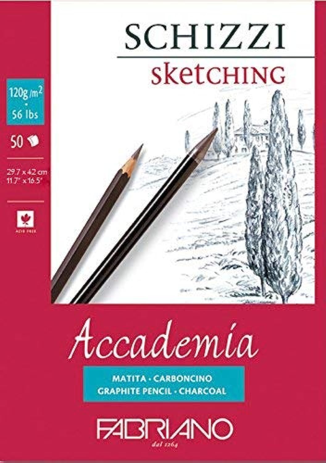 Fabriano Accademia Sketching Paper Pad, 50 Sheets, 120 GSM, Size A3 – Lightweight Paper for Artists & Quick Studies |Ideal for Drawing, Sketching, Mandala, Shading Art, Students, School, Office. Top side Glued Pads with Traditional warm white paper. They are mould-made of 100% cotton and are acid free/pH neutral. They offer a superb surface which will accept all dry as well as light wet media. The paper is sized both internally and externally;ideal for watercolour, tempera, gouche, acrylic, link, charcoal, graphite and drawing,also suitable for printmaking. 120 GSM- Pack Of 50 Sheets. Fabriano Accademia Drawing & Sketching Paper Pads is made of lignin free and acid free cellulose, guaranteeing long conservatione over time. Produced with 100% of E.C.F. pulp (Elemental Chlorine Free), F.S.C. certified (1996 Forest Stewardship Council A.C.) from forests responsibly managed respectful of environmental, social and economic standards. Its internal and external sizing renders it resistant to repeated erasures. It is recommended for artists and amateurs for sketching and drawing with charcoal, pencil and sanguine. Its 200 g/m2 is also suitable for gouache.