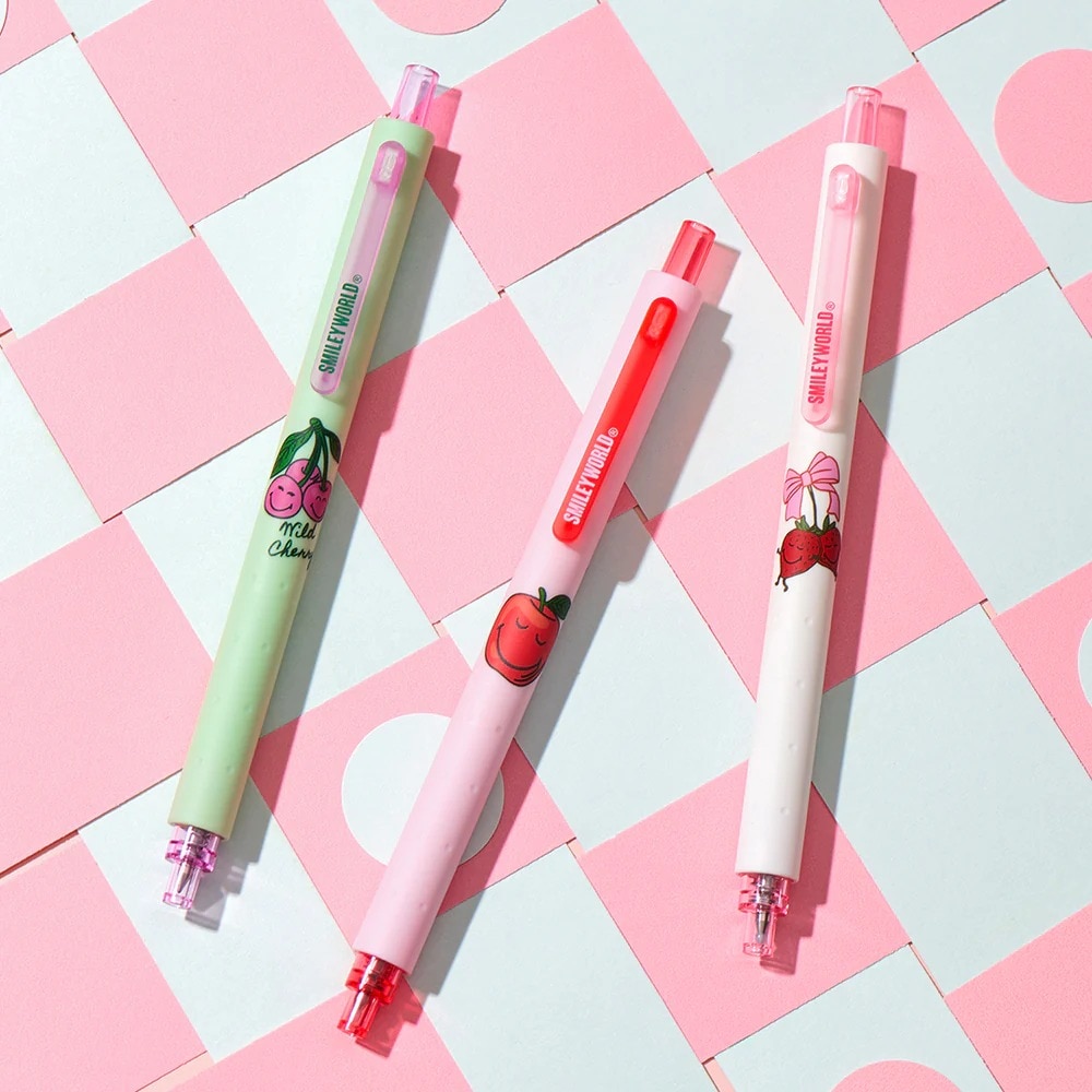 KACO and SMILEYWORLD create the sunshine rule of smile. KACO researches and innovates to create a new generation of KEFILL self-developed refills. KEFILL double ballpoint refills, smooth writing, not easy to run out of ink. Quick-drying ink, not easy to smudge when exposed to water, can be used in exams, and can be easily recognized by computers. Fixed internal wheel structure reduces the chance of internal accessories being scattered and lost when changing refills. A metal weight of about 3.5g is built into the front end of the pen barrel, which increases the weight. and reate a low center of gravity pen body, so that the hand feel is no longer “floating”, and consolidate the foundation of recording. Using soft glue spray painting technology, with 360° anti-slip concave points at the pen grip, comfortable to hold. Interesting fruit patterns, overflowing with smiles and happy writing. The writing angle of the KEFILL double ballpoint pen tip is as low as about 48°, which can also ensure smooth writing. The ink is dark and the handwriting is clear. It can be easily recognized by computer scanning, and it can be trusted for important exams. Double writing length is about 800 meters (+/-10%), which is twice the standard requirement. The pen adopts soft rubber touch, with 360° anti-slip concave points at the pen grip.