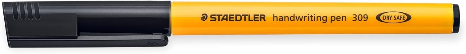 STAEDTLER 309-3 Handwriting Pen Black Handwriting pen with moulded grip zone for comfort and extra control Ventilated cap for safety Dry Safe ink - Pen can be left uncapped for days without drying up Pocket clip to prevent pen rolling on, or off the desk Black ink