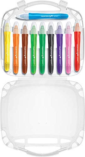 Clean: Plastic body with twist system that protects hands Soft watercolour gel crayons that glide smoothly Gel Ccayons in 10 bright colours