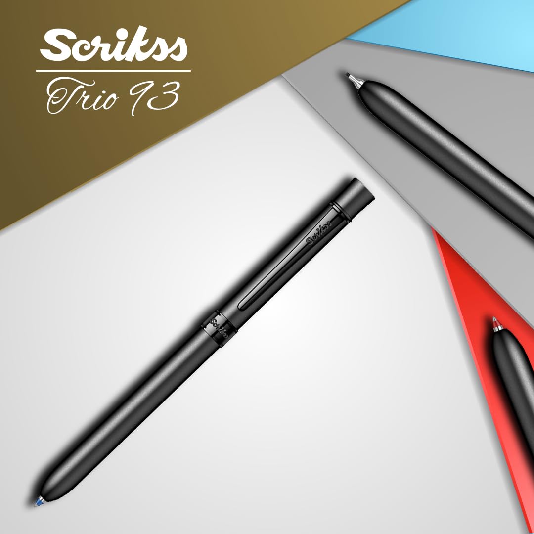 Scrikss Trio Sport 83 Matte Black Multi Pen 3 in 1 Ball Point With Red & Blue D1 Refills & Mechanical Pencil With 0.7mm Lead for Smooth Writing Stylish Elegant Pen for Office Gifting Purpose. * Lacquered brass upper & lower body with multiple layers of Matte Black lacquer. * Lacquered brass accessories with multiple layers of matt black lacquer. * Lacquered stainless steel clip with multiple layers of matt black lacquer. * 360 ° Twist mechanism. * Scrikss Multi Pen D1 Refill ( BLue & Red) + 0.7mm Scrikss Mechanical Pencil Lead.